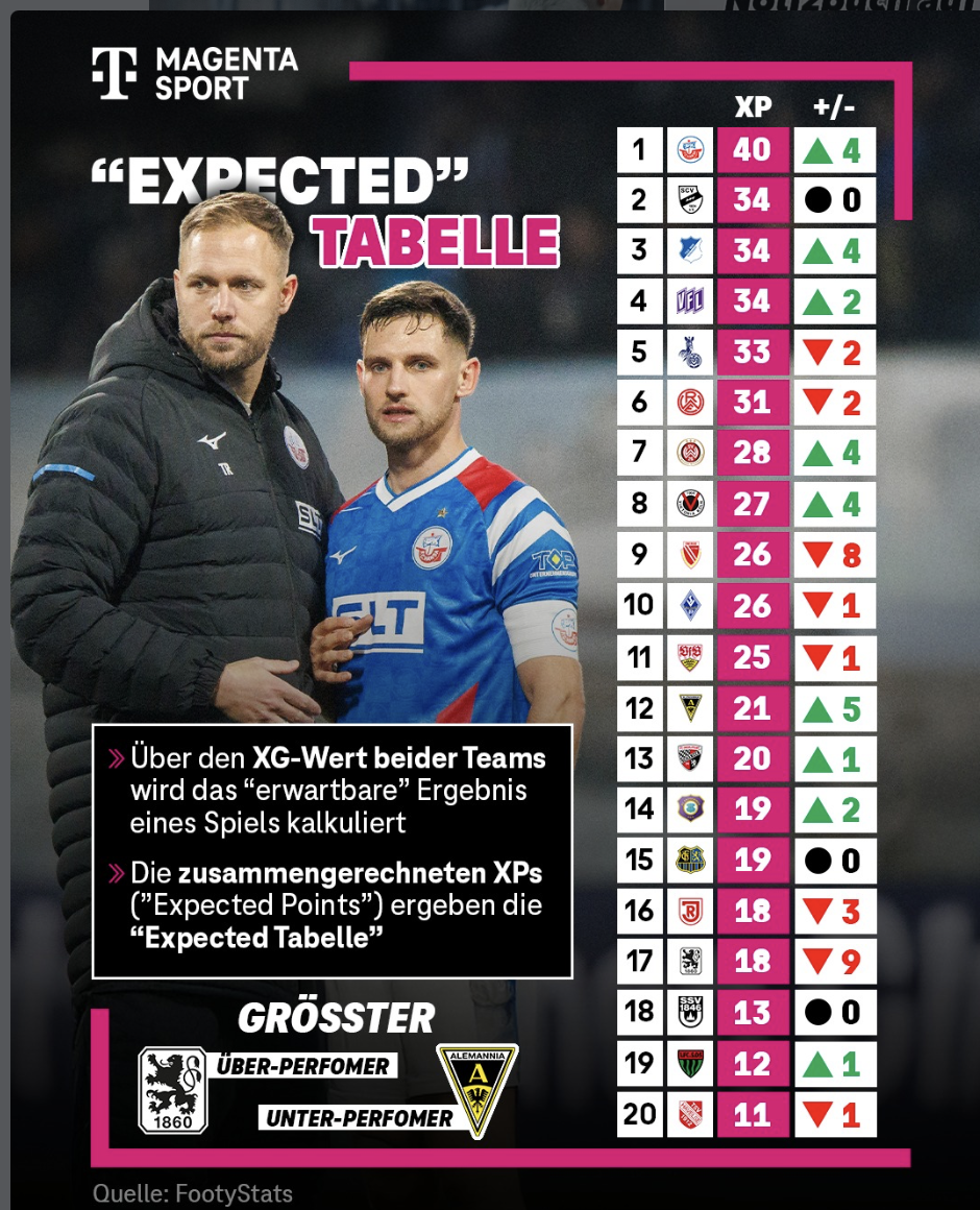 Expected-Tabelle: Die Löwen, die Überperformer der Dritten Liga