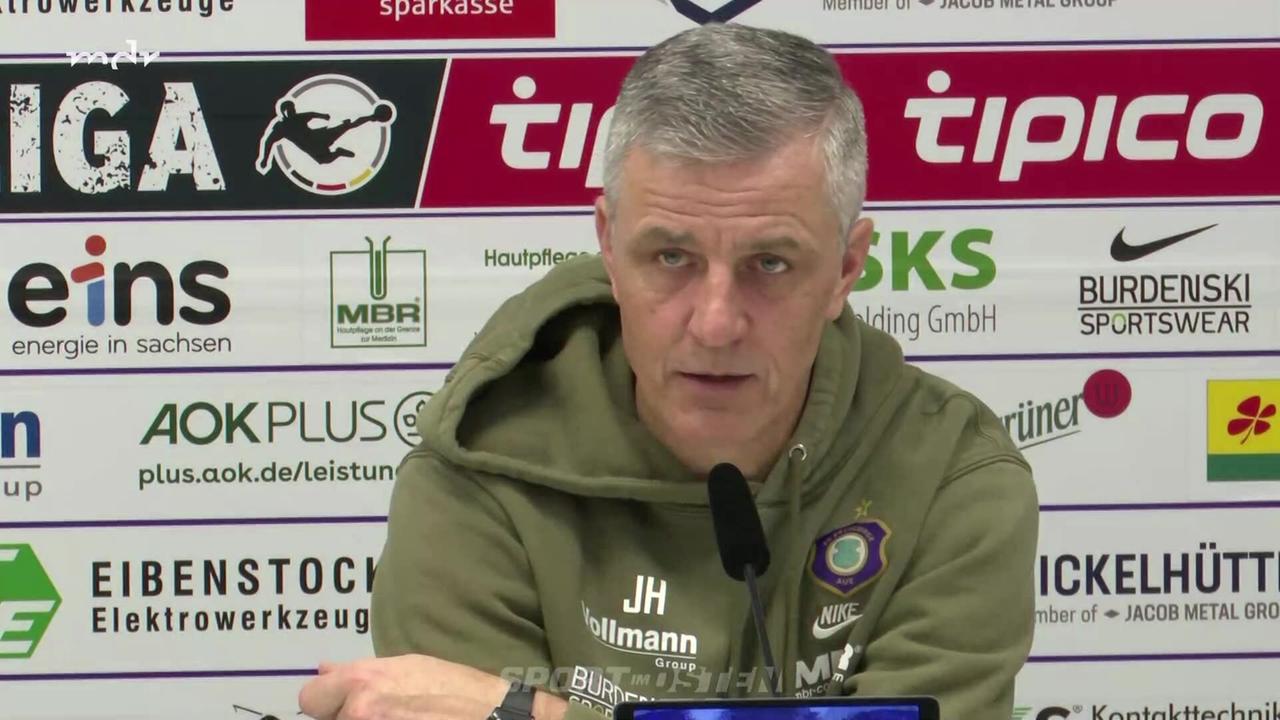 Die Pressekonferenz von Erzgebirge aue vor dem Gastspiel bei Hansa Rostock.